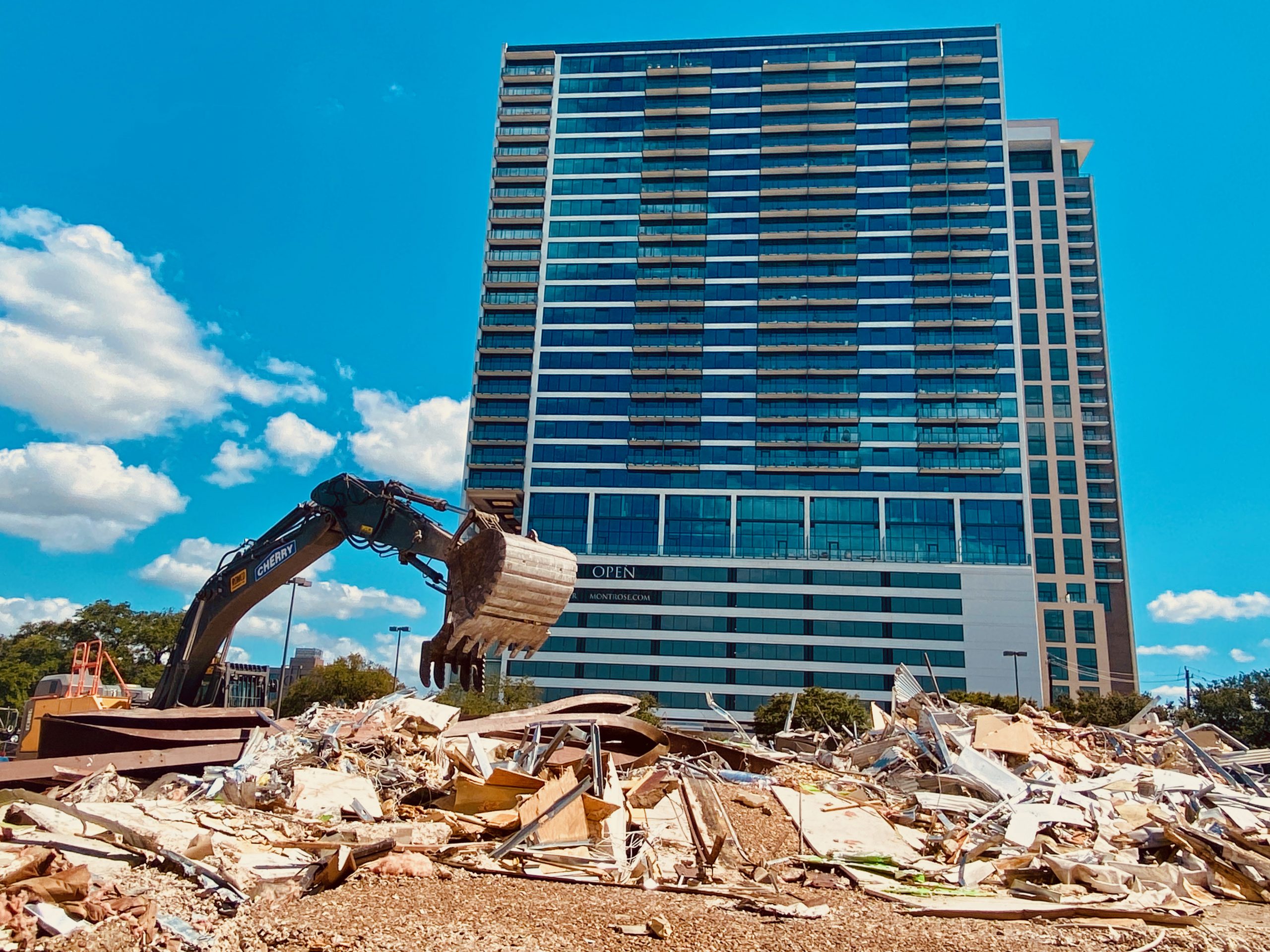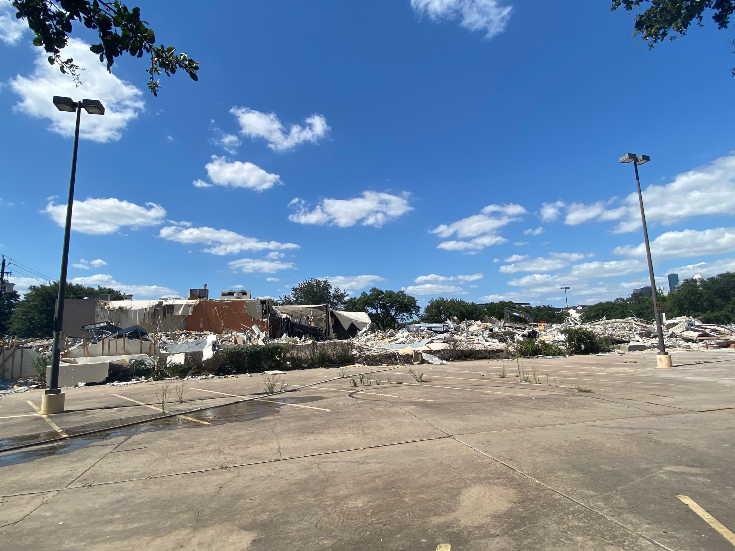 Here are some photos I took of the Disco Kroger destruction this week. Cody’s resided on the top of a 1950s-era building on the adjacent corner that was torn down in 2014. Its replacement is the towering glam condo that dominates most of the photos. Once they clear the lot, they’ll start building a new multi-use center (residence and shopping) that will span two city blocks including the recently demolished strip center along Westheimer that housed my favorite little used bookstore, Half-Price Books. Oh progress, what a mess you make.